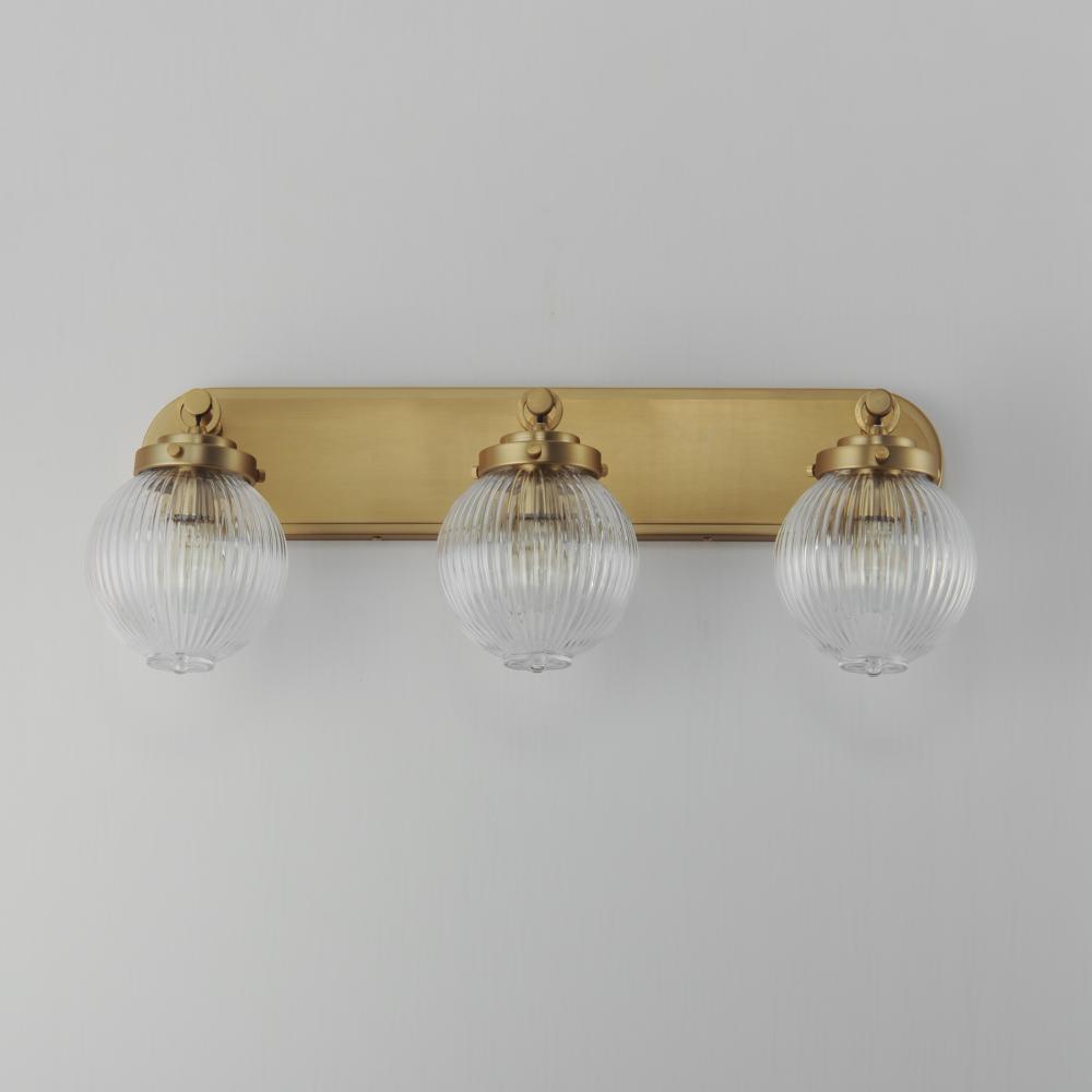 Nostalgic spherical glass volumes with a ribbed pattern and a dipped flat bottom, this collection offers a retro and eclectic choice for pendants and sconces. Available in Oil Rubbed Bronze, Satin Brass, and Satin Nickel, these fixtures provide elegant ill