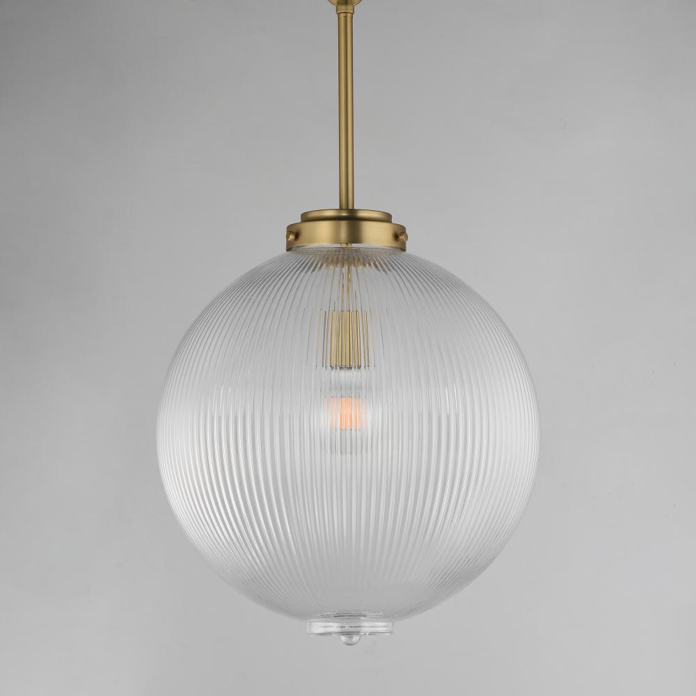 Nostalgic spherical glass volumes with a ribbed pattern and a dipped flat bottom, this collection offers a retro and eclectic choice for pendants and sconces. Available in Oil Rubbed Bronze, Satin Brass, and Satin Nickel, these fixtures provide elegant ill