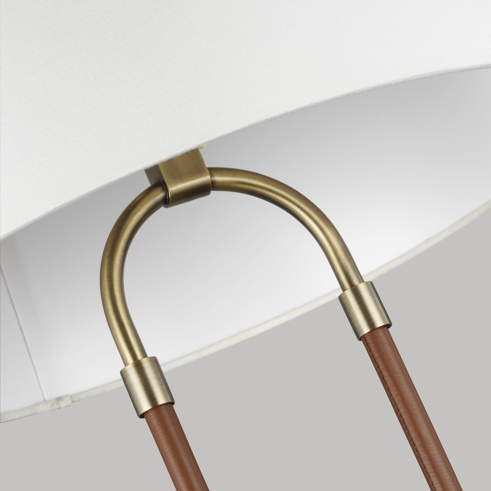 In the Katie one light table lamp leather straps contrast with metal and white linen fabric shade to round out a timeless design. Available in: Time Worn Brass with Brown Leather or Polished Nickel with Black Leather. The combination of leather and steel gives this round chandelier equestrian flair.