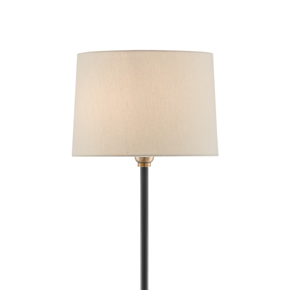 Standing upon principles of simplicity, our Keeler Floor Lamp goes from a straightforward block to a basic cone shape that embraces a long thin stem. The materials it is made from are also unpretentious: the metal is cast aluminum in an antique brass finish and iron in a black nickel finish. Topping this study in understated style is a tan shantung shade. From urban enclave to industrial chic loft, this floor lamp will shine!