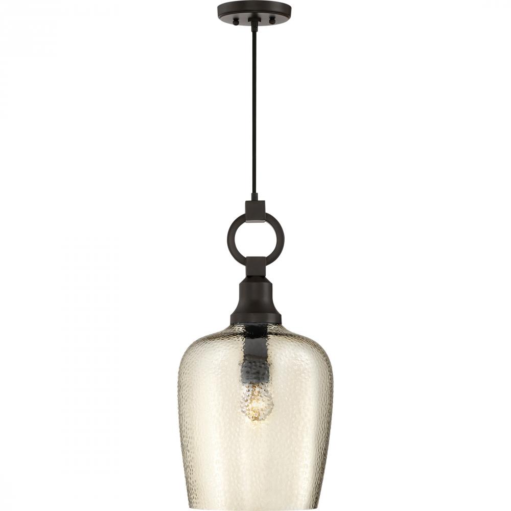 The Kendrick pendant is old world elegance with hints of farmhouse style. The base is classic with a contemporary o-ring at the top. The amber glass is hammered adding uniqueness and charm to this beautiful transitional pendant. Select from a variety of