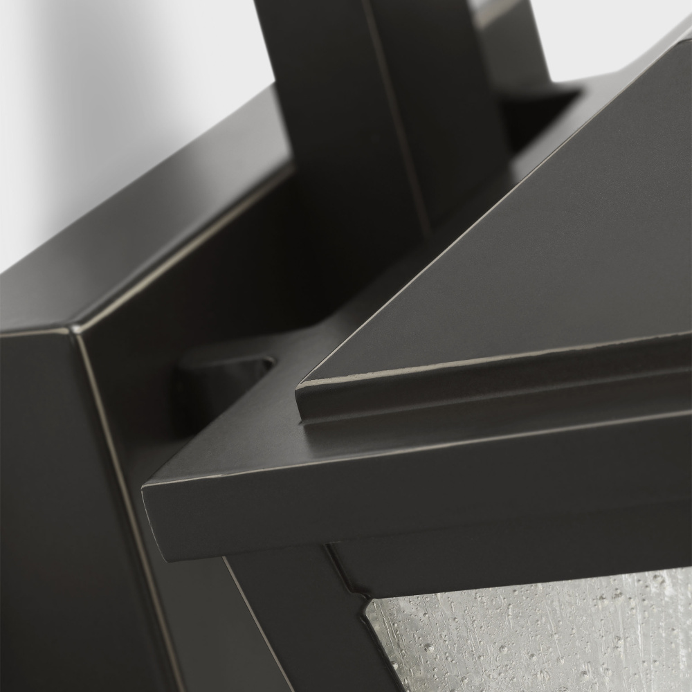 Crafted with Aluminum in a Antique Bronze finish with clear seeded glass shades
