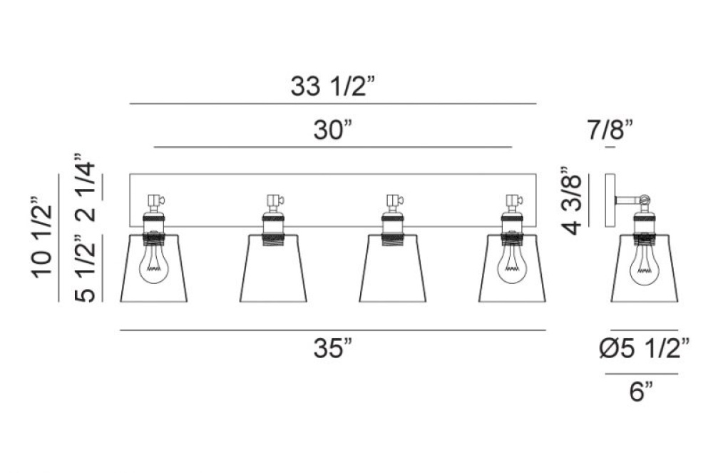 33.5"W x 4.38"H x 0.88"E