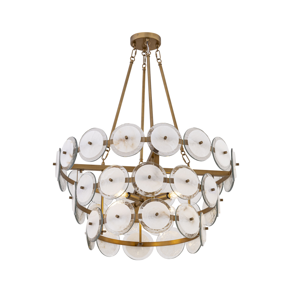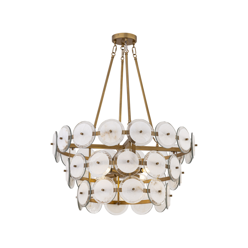 4-Light Pendant - Legacy Brass with Clear Textured Glass and Alabaster