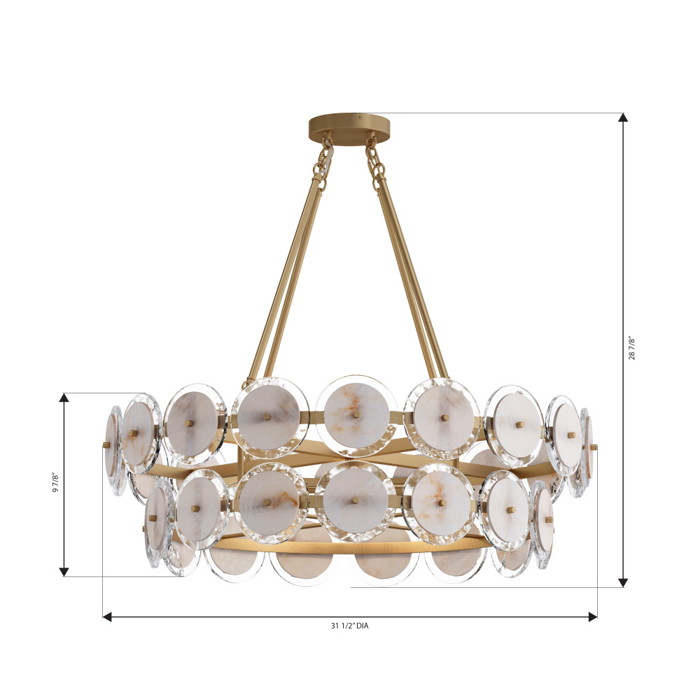 This fixture measures 31.5"L x 31.5"W x 9.25"H.