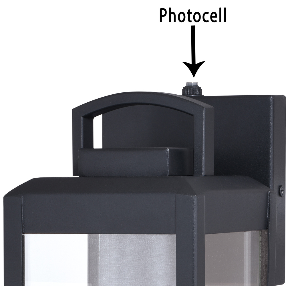 Dusk to dawn photo cell automatically turns fixture on in the dark and off in the light for added safety and security, saving energy during daylight hours