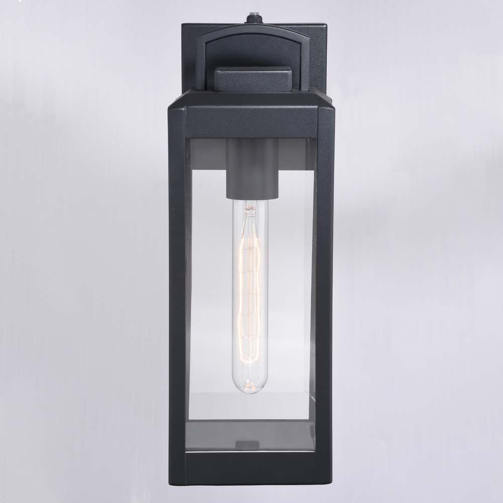 Elongated, slim, clear glass panels frame the Kinzie for a clean, contemporary feel. The oblong lantern handle adds an additional design element to this outdoor wall light collection. Finished in black, the Kinzie creates a bold but understated look perfect for highlighting your space. Combine that with vintage Edison style filament bulbs to complete the look. This outdoor wall light is ideal for your porch, entryway, garage, or any other area of your home.