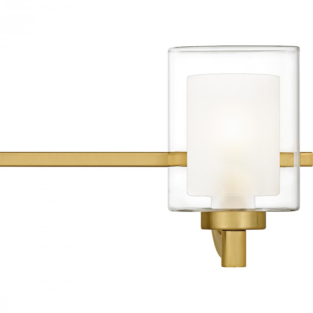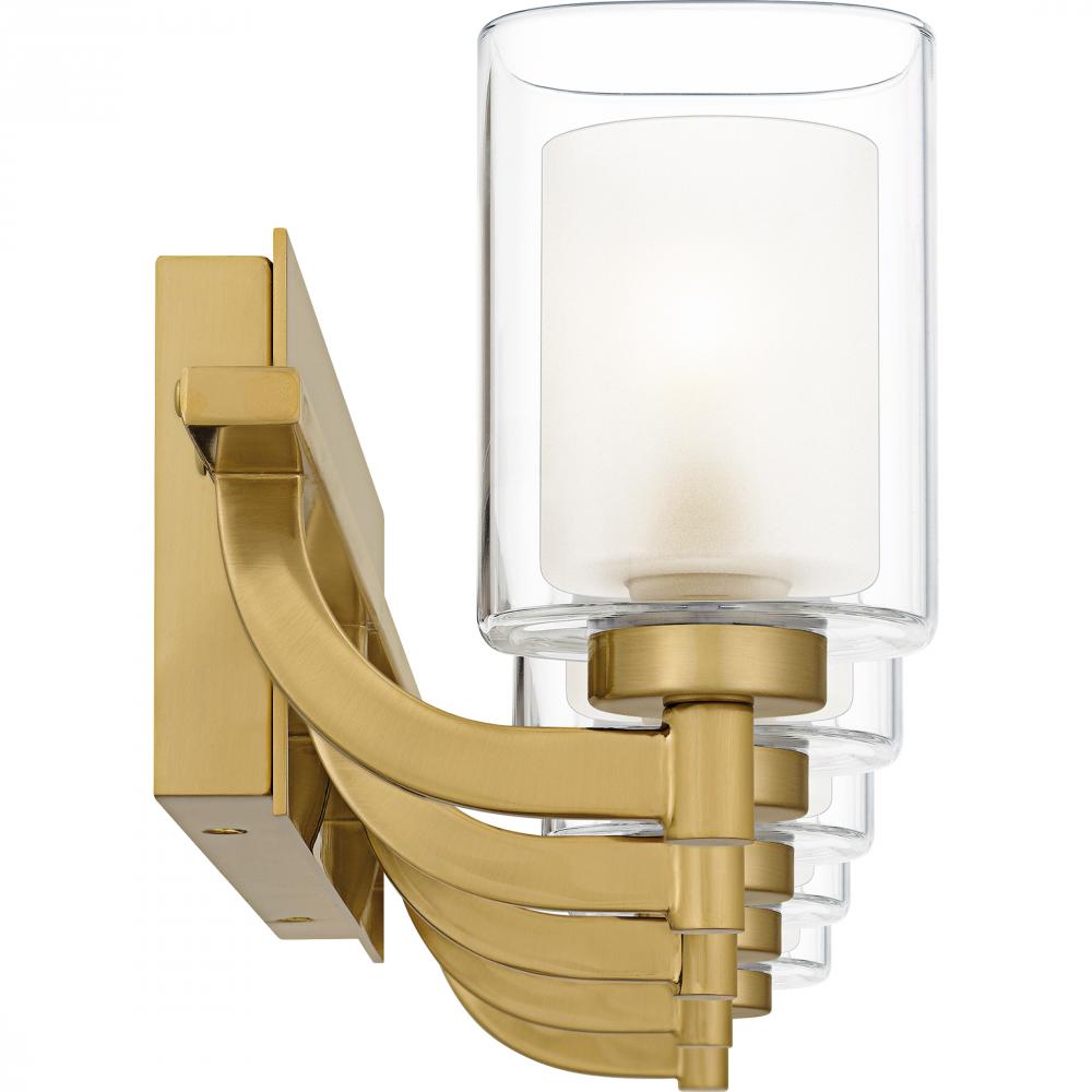 This modern posh wall sconce and vanity light collection features a simplistic design with several classic finish options: choose from brushed nickel, polished chrome, or brushed gold. The inner heavy glass is sand blasted inside and encased within outer c