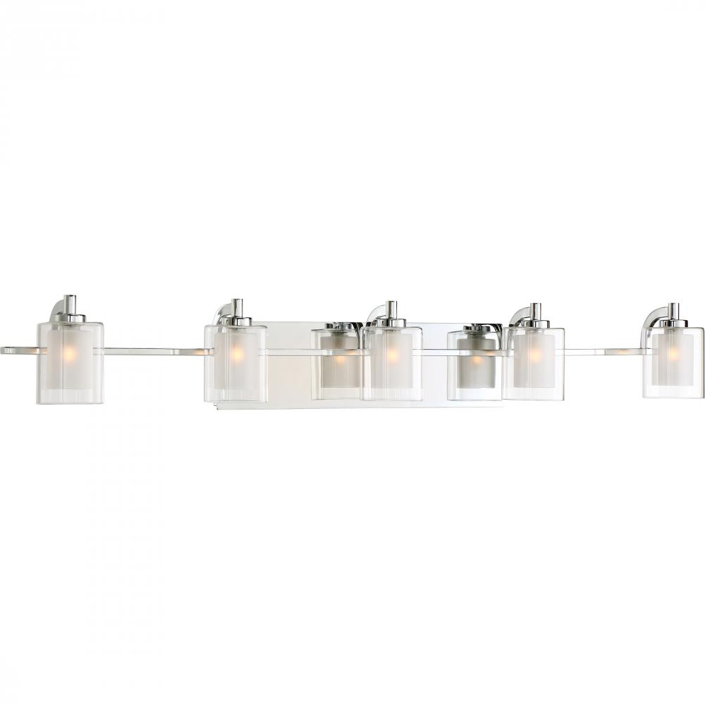 This modern posh collection features a simplistic design with a sleek polished chrome finish. The inner heavy glass is sand-blasted inside and encased within outer clear glass for a sophisticated and stunning look.
