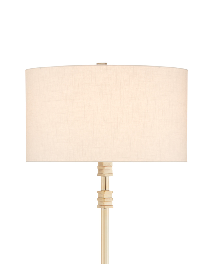 With a shade made of metal in a brushed brass finish and a black marble base, the La Rue Floor Lamp embodies sleek minimalist European style. The brass and black floor lamp is perfect for contemporary interiors, featuring a tall, thin stem and exuding indirect light. Elevated materials, such as the black marble with white veining and the brushed brass finish, enhance its design. This lamp showcases contemporary styling and meticulous attention to detail.