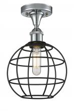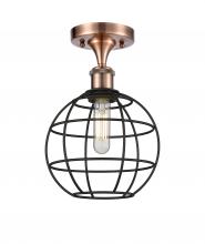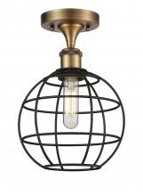 Lake Placid - 1 Light - 8 inch - Antique Brass - Matte Black Shade - Semi-Flush Mount