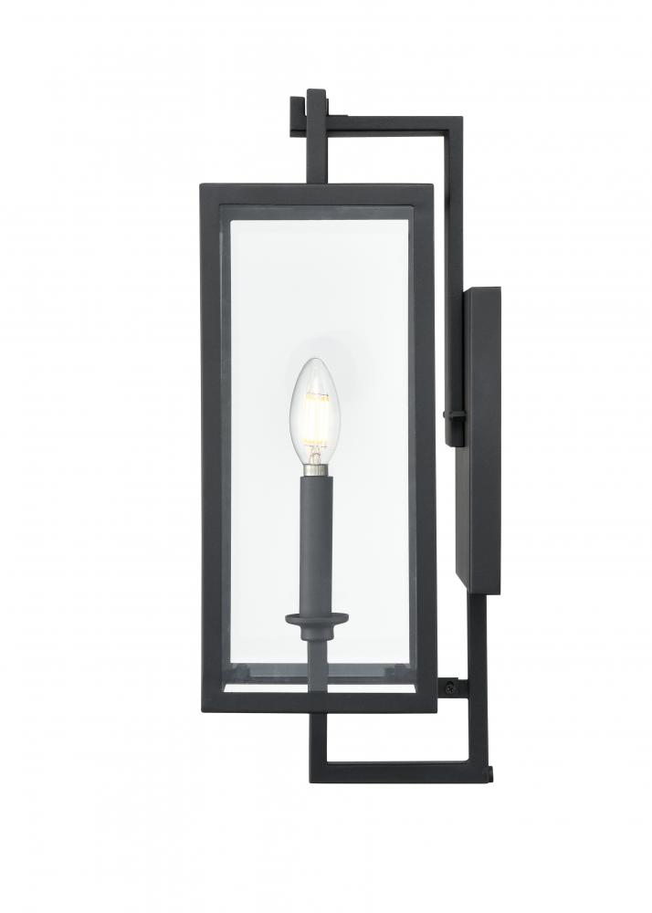 A contemporary interpretation of gothic Victorian design, the Lamont Collection of outdoor lighting is designed to make a bold visual impact on any entryway. The succinct lines of the steel framework create an elongated fixture finished in textured black. The partial, clear glass panels reveal classic-style candles in 1-light, 2-light, and 3-light options.