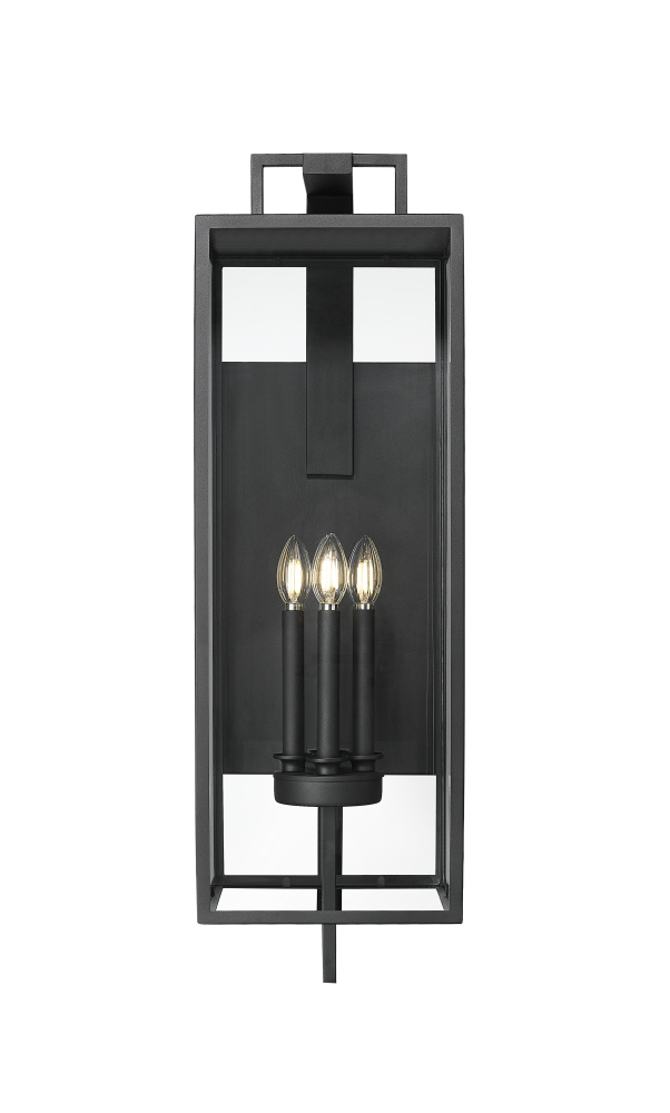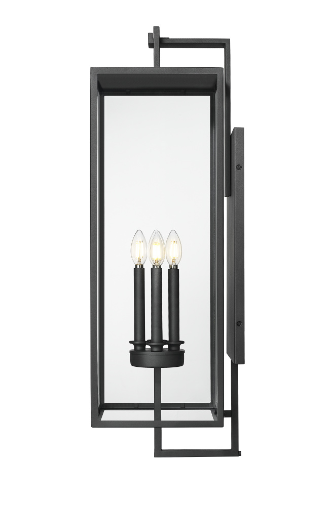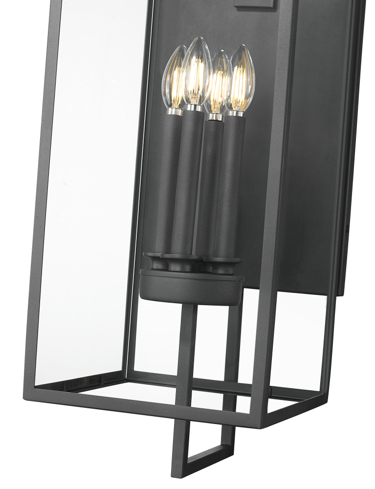 A contemporary interpretation of Victorian Gothic design, the Lamont Collection of outdoor lighting is designed to make a bold visual impact on any entryway. The succinct lines of the steel framework create an elongated, multi-dimensional fixture finished in durable textured black. The partial, clear glass panels reveal classic style candles in 1, 2, 3, and 4-light options. The fixture’s overall profile melds perfectly with any modern exterior or adds a dynamic twist to classic architectural styles.