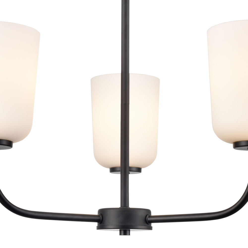 The Laphia Family features sleek lines, a graceful profile, and brilliant white, bell-shaped glass shades creating an ambient glow. The Family is available as sconce, chandelier, pendant, mini-pendant, semi-flush mount, flush mount, and an excellent vanity task light. Perfect for any interior plan from Craftsmen to modern farmhouse, these fixtures are finished in stylish brushed nickel, matte black, or modern gold.