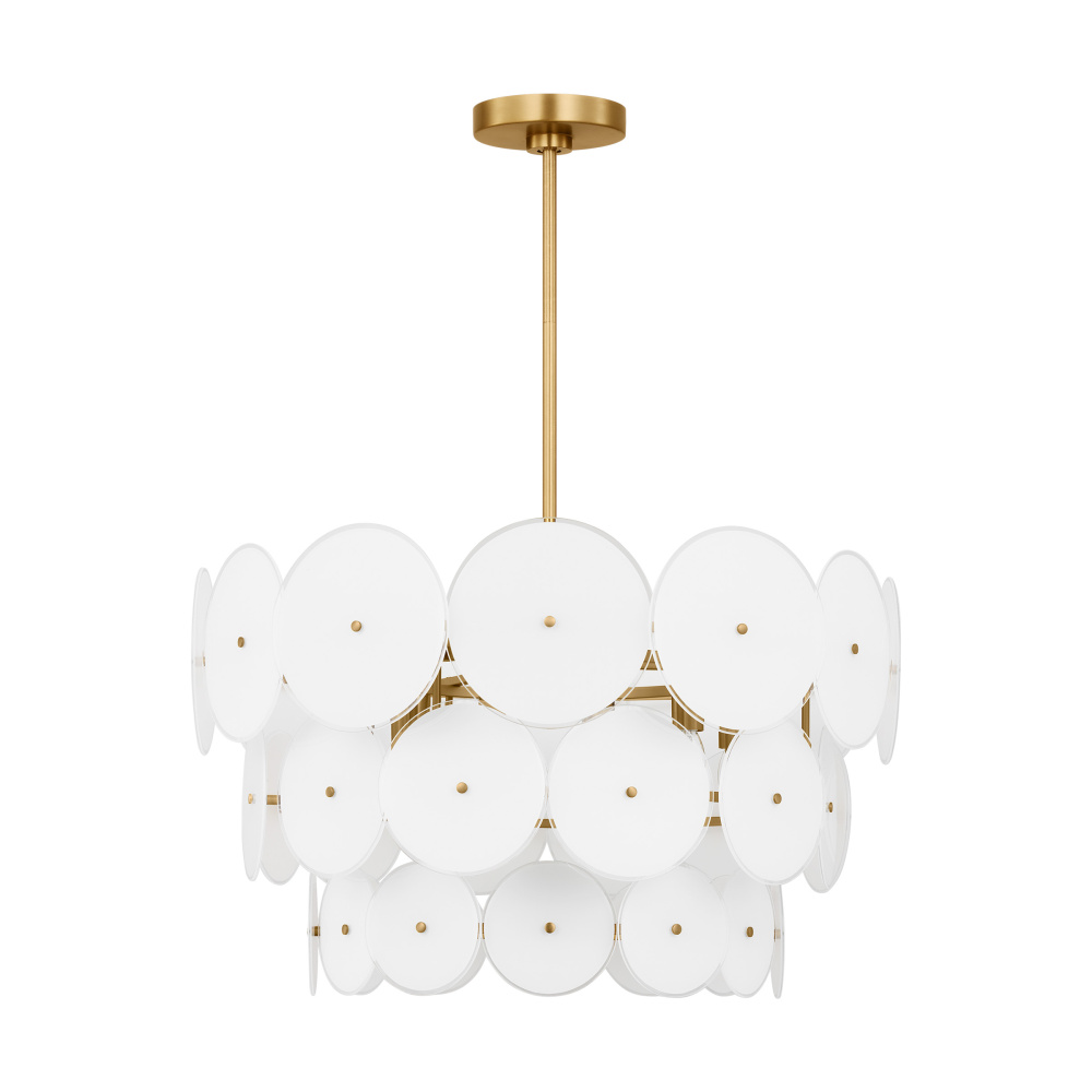 Beautiful glass discs cascade down the fixture to give the Emery series a playful tone. Designed to captivate and illuminate with its timeless elegance and refined sophistication. Inspired by the iconic Kate Spade (AW vs. kate spade new york) brand, the Emery series is a perfect blend of luxury, style, and functionality, adding a touch of glamour to any room in your home.