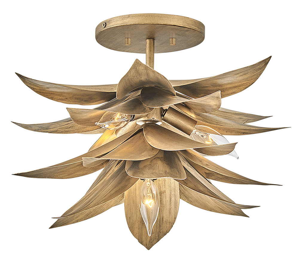 Agave uniquely blends form and function with its extraordinary hand sculpted, leafy layers. Inspired by the agave plant, this fountain-like silhouette captivates with a distinctive nature-inspired design brought to life in an eye-catching Burnished Gold finish.