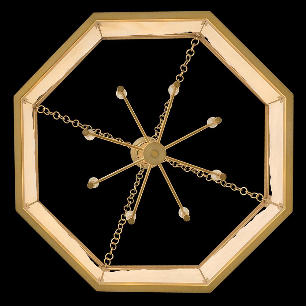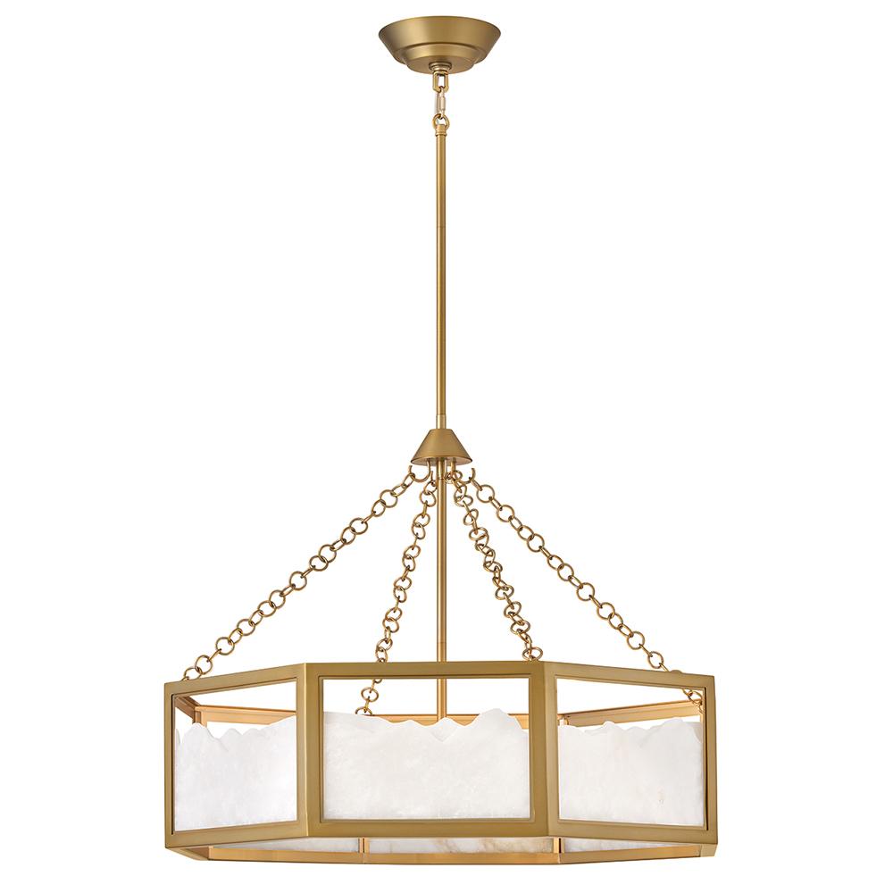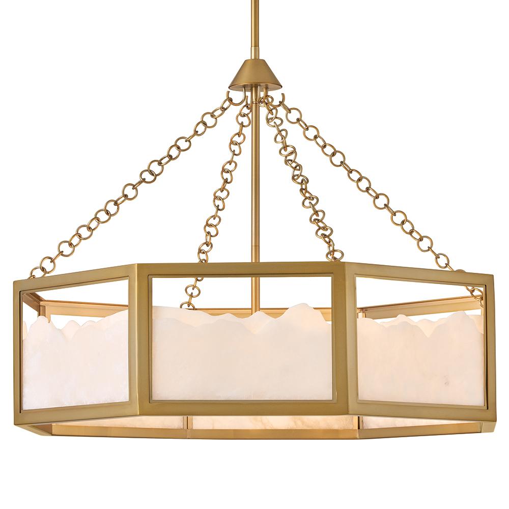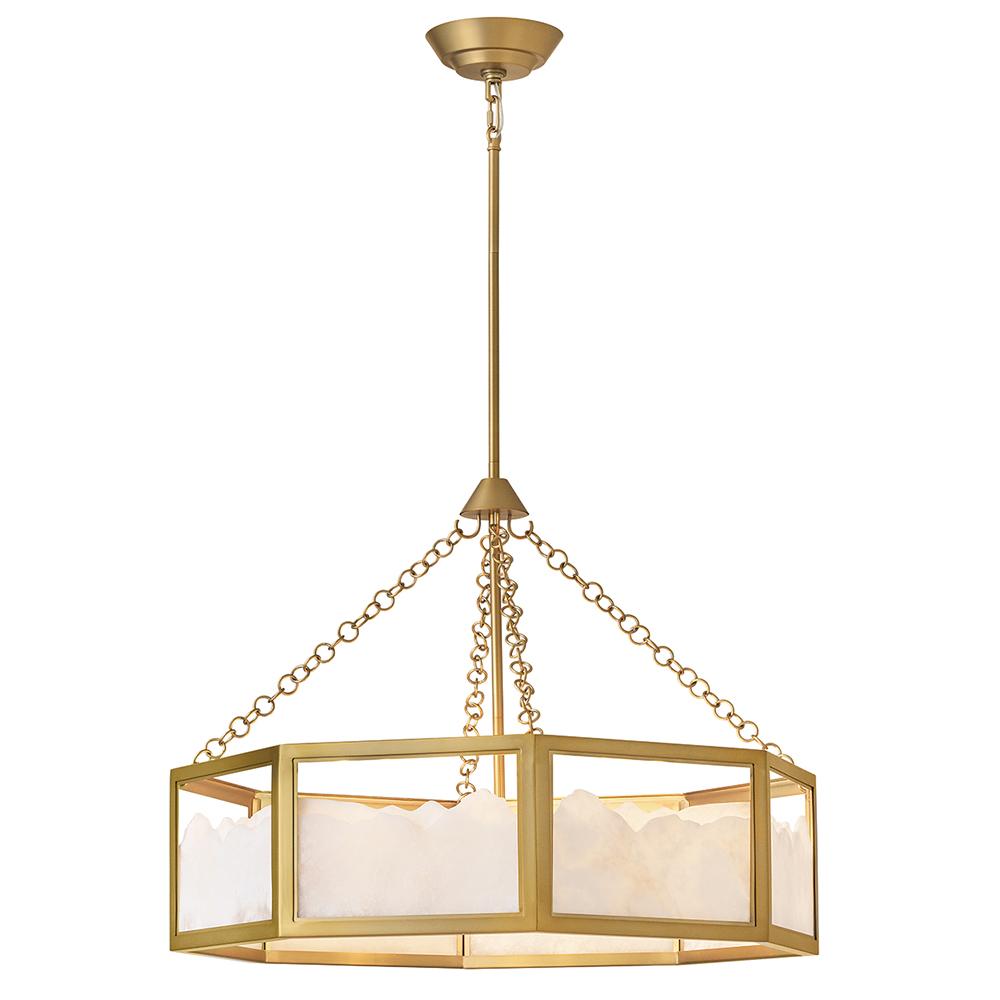 Inspired by Italian design, Valeta’s natural alabaster shade with jagged top edges is showcased by a geometric Lacquered Brass frame. Truly one-of-a-kind graining, color variations, and organically formed textures make each Veleta fixture genuinely unique.