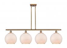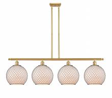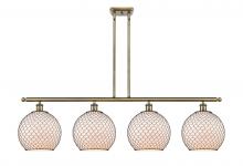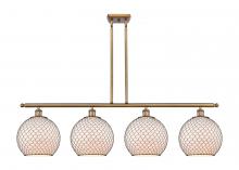 Large Farmhouse Chicken Wire 4 Light Island Light part of the Ballston Collection Solid Brass 90 Degree Hang Straight Swivels for Sloped Ceilings Included
