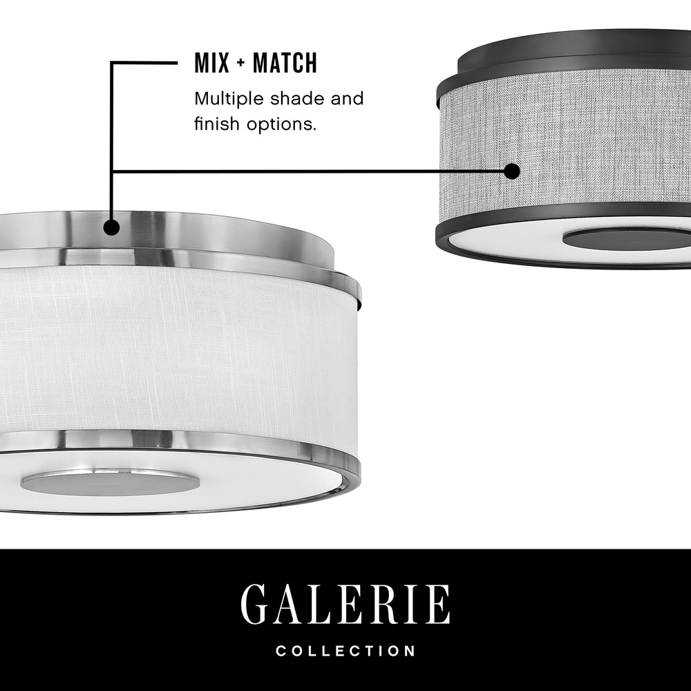 Designed with luminosity top of mind, Halo is held within an oversized lockup encased in a sleek flat disk design element. It is complemented by an Off White Linen or Heather Gray Linen shade, accompanied by a Black or Brushed Nickel finish, and easily completes any space with both form and function top of mind.