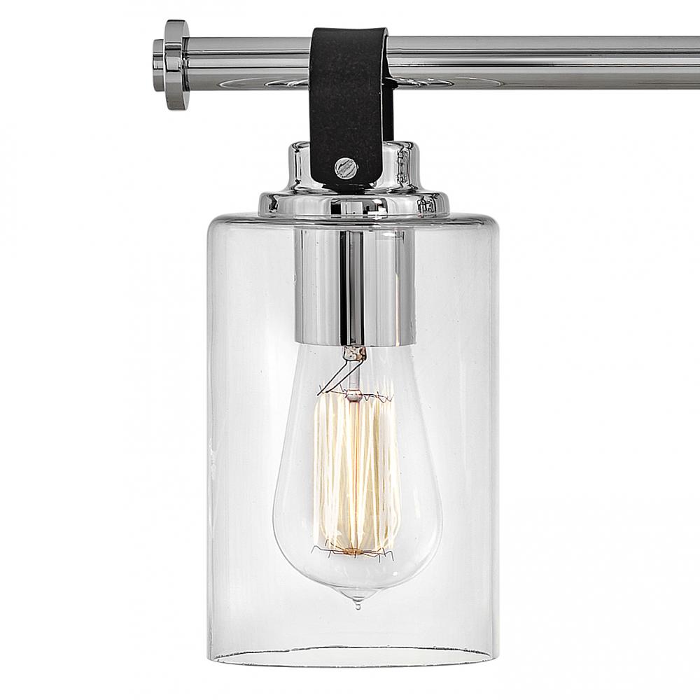 Halstead evokes Modern Americana at its finest. Designed with an equestrian flare in mind, a faux leather finished strap reinforces a rustic simplicity that harmonizes with the modern refinement of clear glass shades. Offered in a Chrome or Heritage Brass finish, Halstead’s versatility makes it the perfect “anywhere” design.