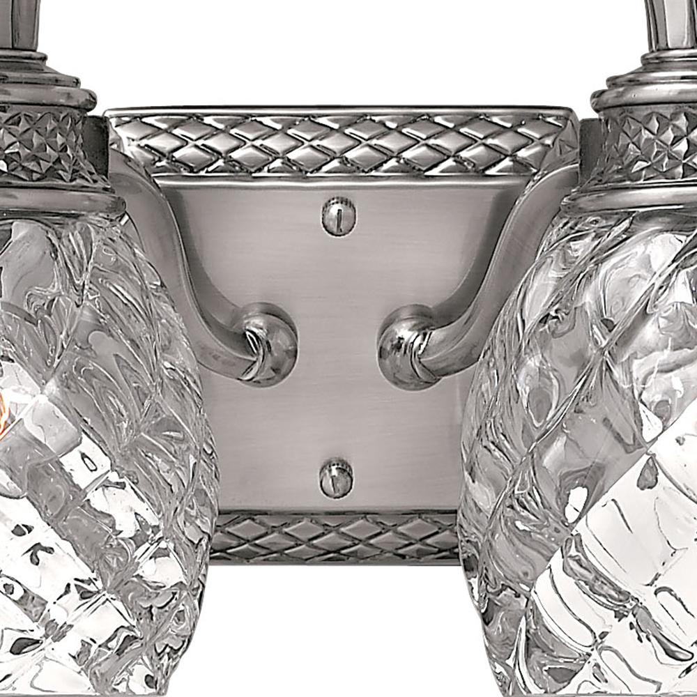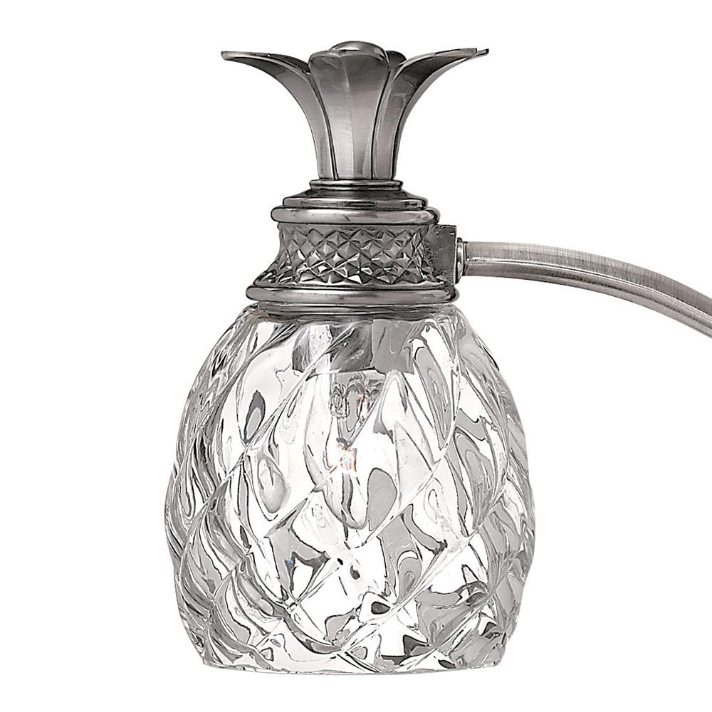 A Hinkley classic, the ornate Plantation collection features exceptional pineapple shaped, clear optic glass that makes a noble statement. The elaborate, decorative cast detailing is accentuated by its lush finish.