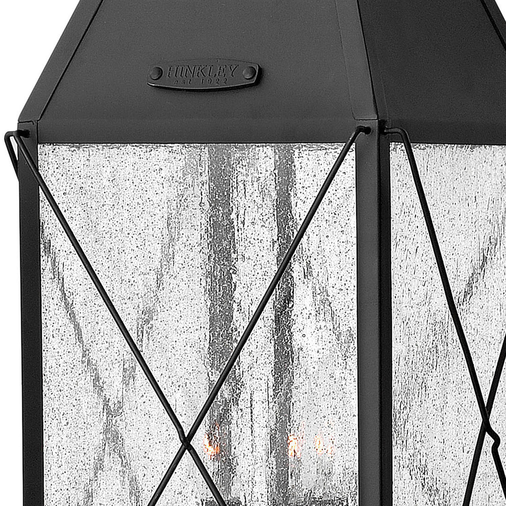 York uses authentic exposed rivet construction, hand-made in solid aluminum, and celebrates the bold traditional lantern design Hinkley is renowned for. This classic hip roof and wire cage turn of the century style comes with an optional interior metallic reflector and rolled top loop. The gallant proportions of its striking silhouette are reinforced with a vintage Black finish, cast face plate and clear seedy glass.