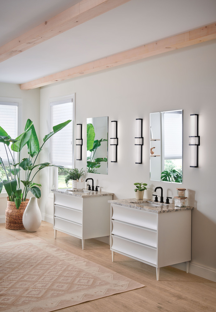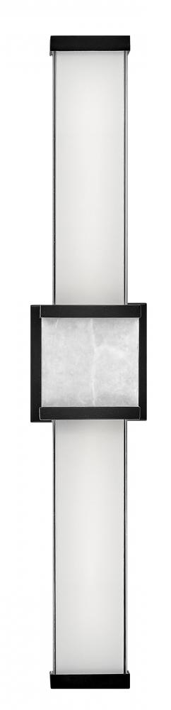 Turn your bathroom into a sanctuary with Pietra. Luxe materials and meticulous craftmanship add to the spa-like zen of this integrated LED collection. A prominent cast center bracelet features a piece of solid stone with natural veining and subtle coloration that gleams against the Chrome or Black finish. Sophisticated details including cast endcaps and mitered glass complete this captivating look.