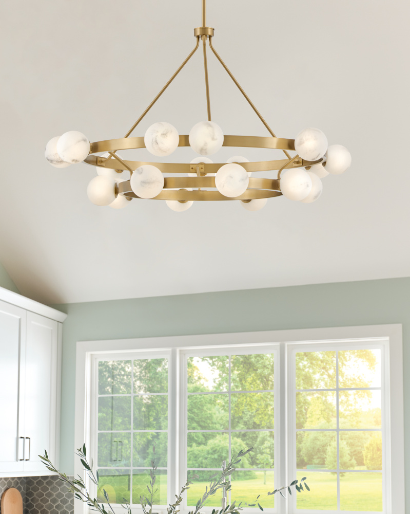 Selene is what dreams are made of. Swirled glass globes dance along the silhouette, providing an enticing, ambient glow and attracting attention in all the right ways. Selene indulges in the details and revels in the spotlight, projecting a strong confidence in modern design.