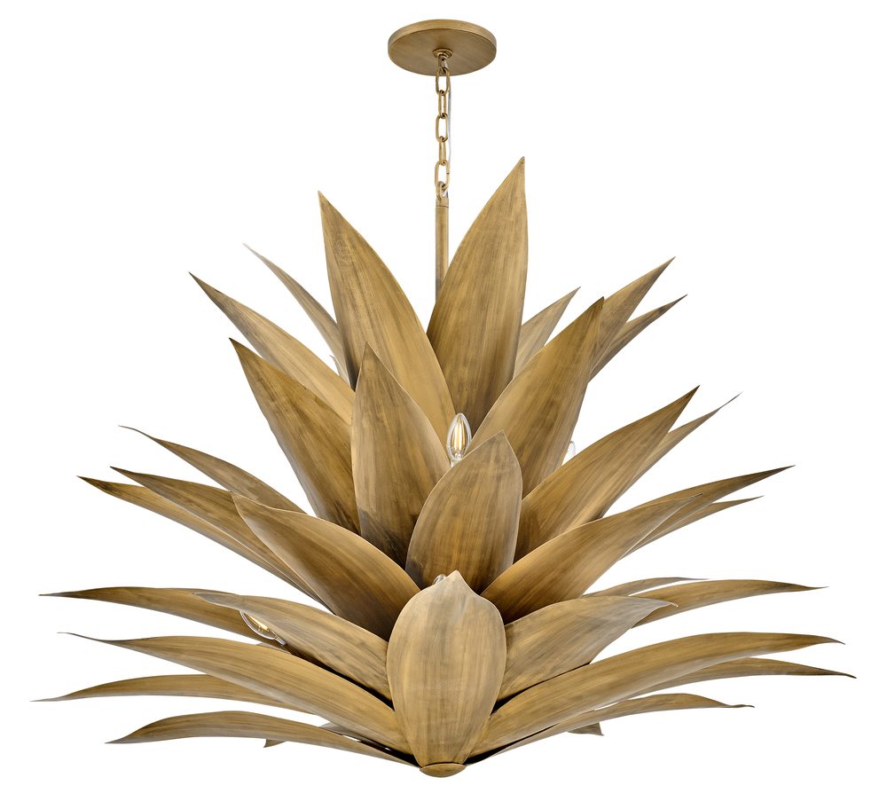Agave uniquely blends form and function with its extraordinary hand sculpted, leafy layers. Inspired by the agave plant, this fountain-like silhouette captivates with a distinctive nature-inspired design brought to life in an eye-catching Burnished Gold finish.