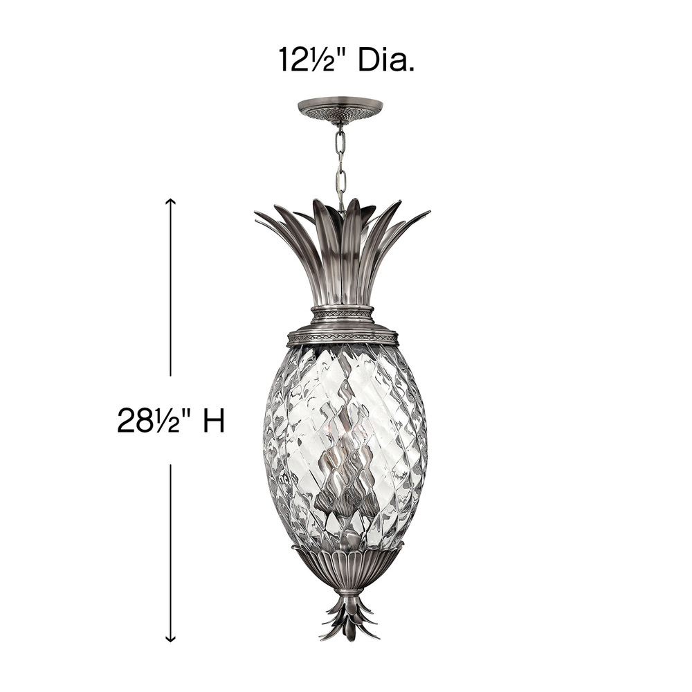 A Hinkley classic, the ornate Plantation collection features exceptional pineapple shaped, clear optic glass that makes a noble statement with matching candle sleeves and elaborate, decorative cast detailing.