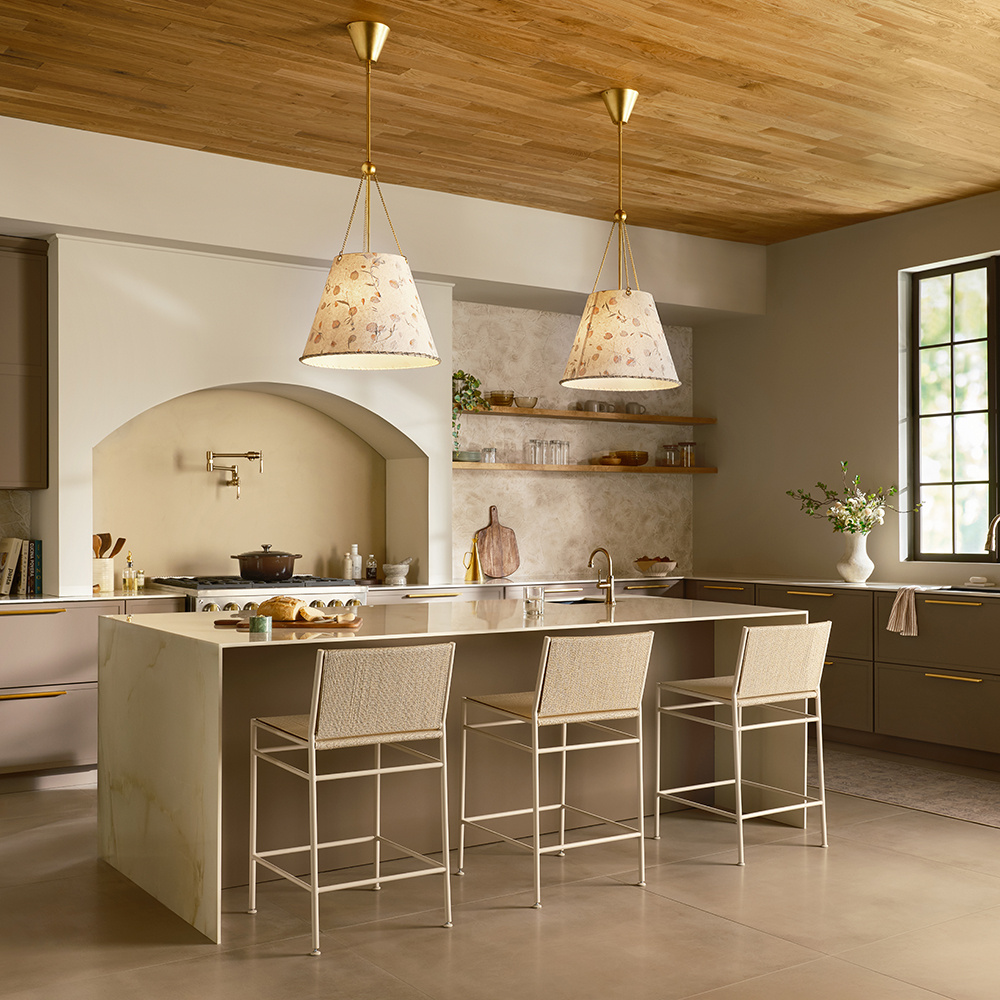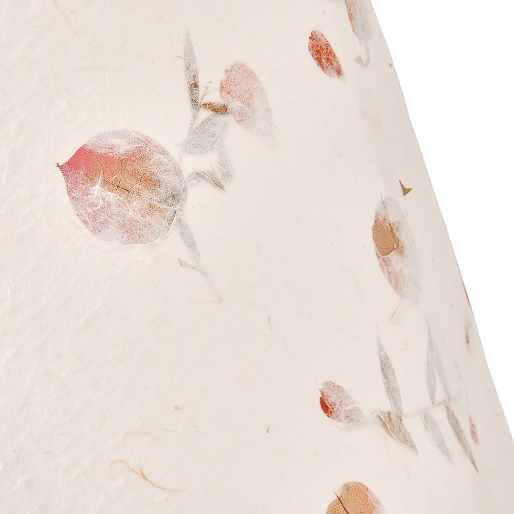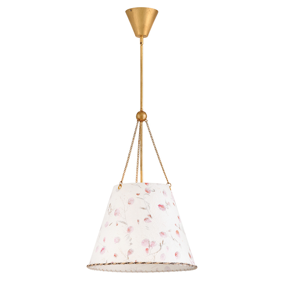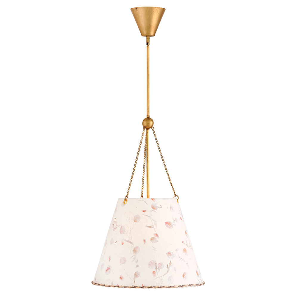 Artisan-crafted from handmade paper pressed with real flowers, Primrose’s delightful shade with twisted rope detailing brings truly unique beauty and cozy ambiance to your space. Its elegant conical silhouette is suspended gracefully from delicate chains, enhanced by a warm Distressed Brass finish.