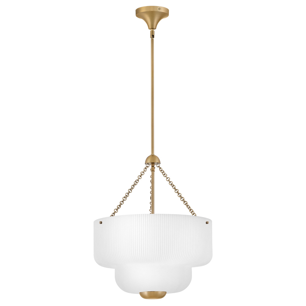 A clean design with traditional styling, Adella’s fine-ribbed glass shade creates a soft silhouette accented by fine details, delicate chains, and a sleek flared canopy. A Lacquered Brass finish complements Etched Opal or Smoke glass, accenting your living space with a distinguished aesthetic