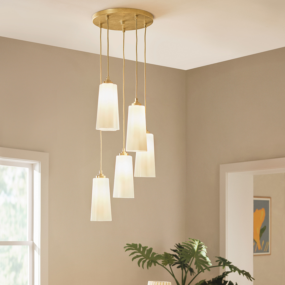 The softly flowing waves of Honey’s cased opal glass add a touch of lightness and whimsy to any decor style.