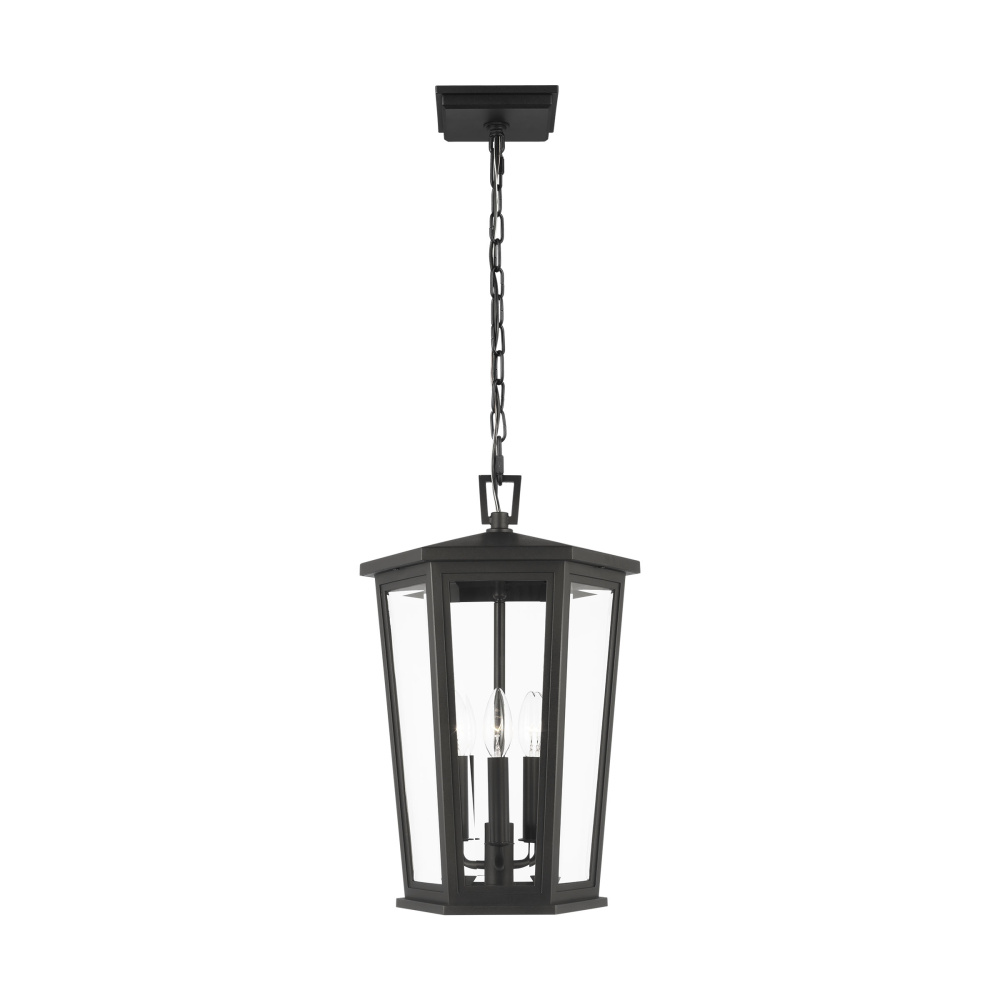 The Witley outdoor series by Sean Lavin Lighting is reminiscent of traditional outdoor oil lanterns with several individual panes of glass coming together to create facets that catch the light. Generous proportions in the Textured Black finish and Clear Beveled glass provide generous illumination to welcome guests and brighten passageways. The assortment includes mini, small, medium, large, and extra-large outdoor wall lanterns, a medium pendant, and a 3-light outdoor post lantern.