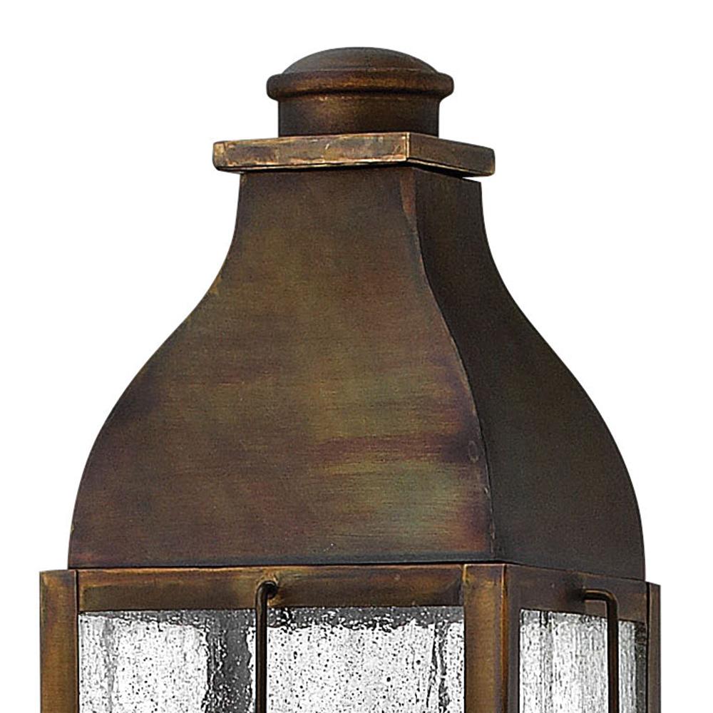 Bingham’s traditional style recalls a turn-of-the-century gas light reproduction. The vintage look is nautical in nature and recognizes Hinkley’s origins on the shores of Lake Erie. The aluminum construction features clear seedy glass and a Greystone or Sienna finish, while candelabra bulbing completes the authentic style.