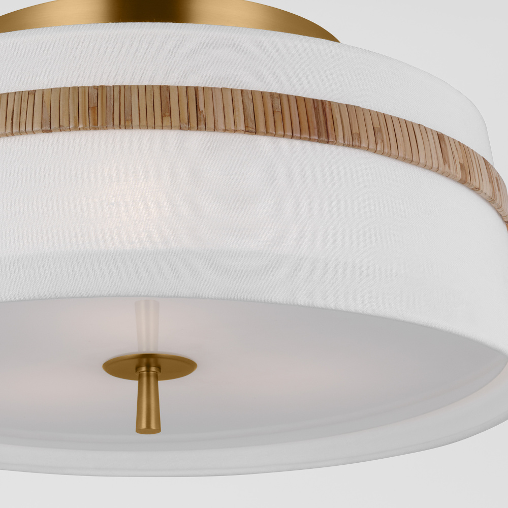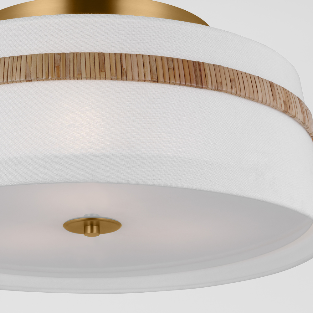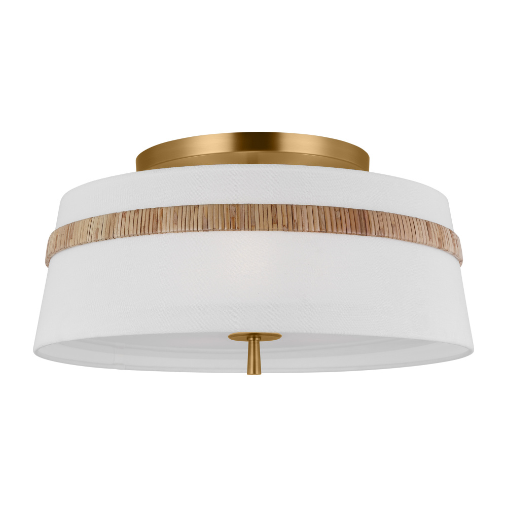 The Cordtlandt series by Alexa Hampton has a simple, purposeful design, making it a perfect addition to any uptown chic décor. The round-shaped flush mount features an etched glass diffuser and a decorative end stem that ties the look together. Updated with a rattan woven ring detail elevates the design with a coastal vibe.