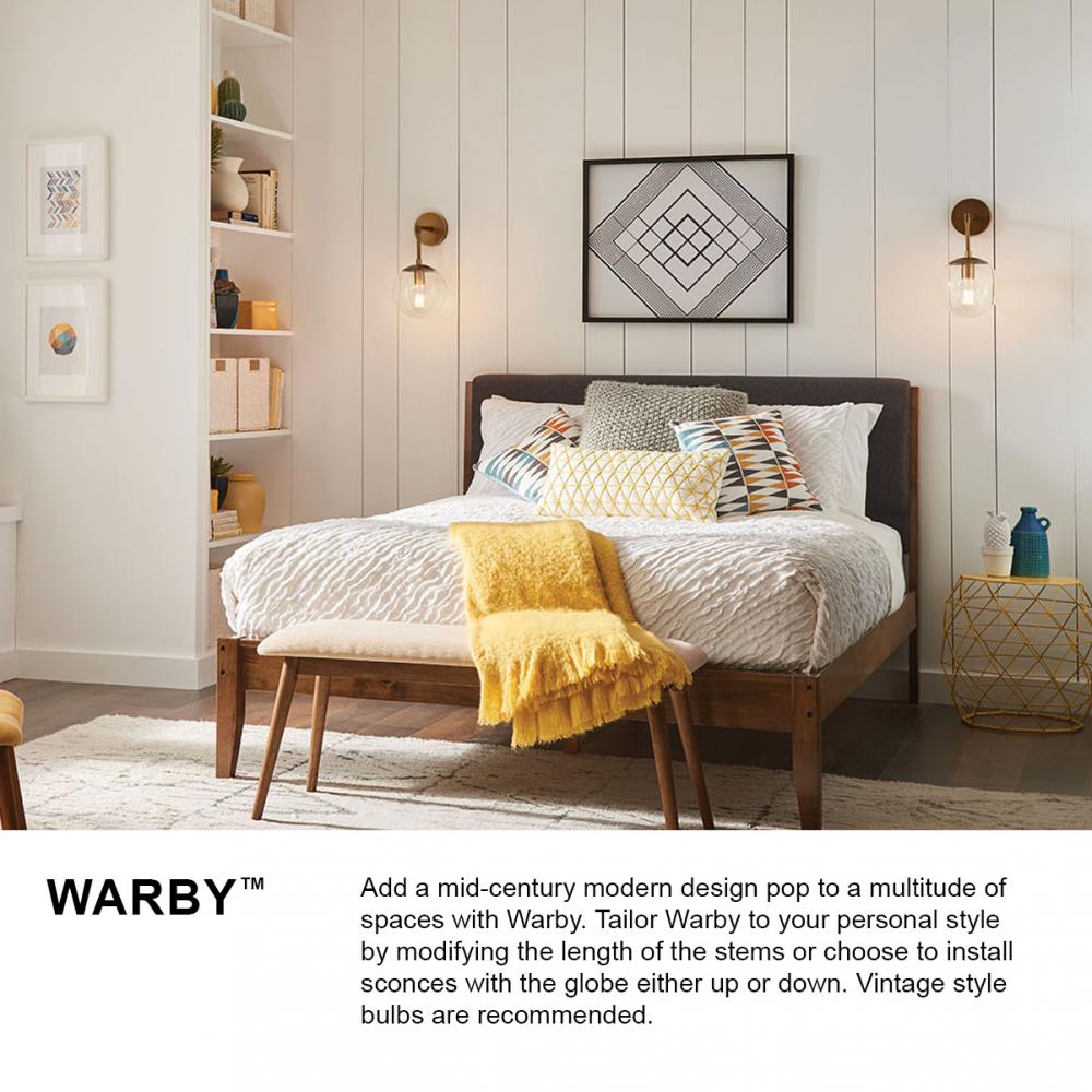Add a mid-century modern design pop to a multitude of spaces with Warby. Tailor Warby to your personal style by modifying the length of the stems or choose to install sconces with the globe either up or down. Vintage style bulbs are recommended.