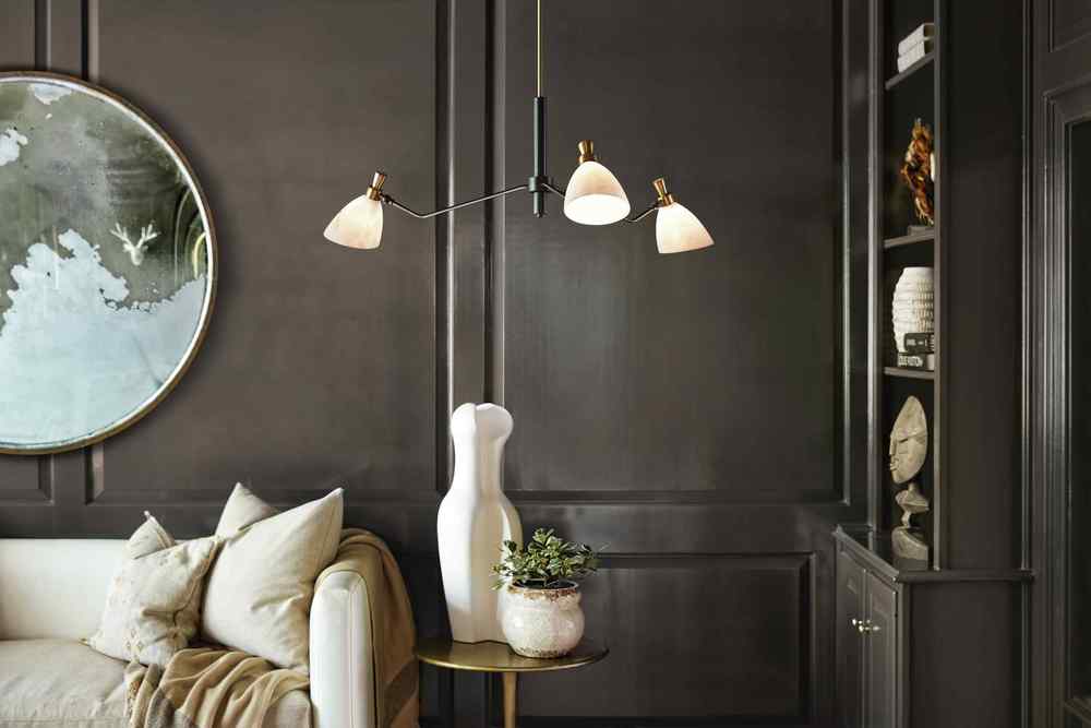 Influenced by a mid-century modern aesthetic, Sinclair’s striking profile is accentuated by stunning details. A classic finish combination of Heritage Brass and Black is paired with luminous, luxurious faux alabaster shades. Sinclair’s sophisticated design offers articulating shades to create a custom look. All designs for Sinclair must be bulbed with LED bulbs only (not included).
