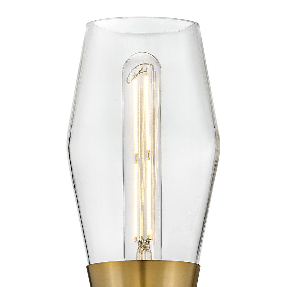 A geometric gem, Livie cleverly mixes sleek lines with an angular shape for a contemporary cool look that makes itself at home anywhere. Clear glass unites with spun metal elements in striking Black or luxe Lacquered Brass finish options to boldly underscore Livie’s modern edge.