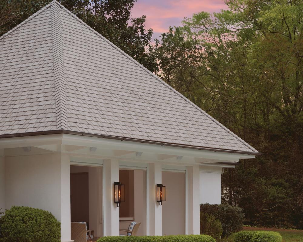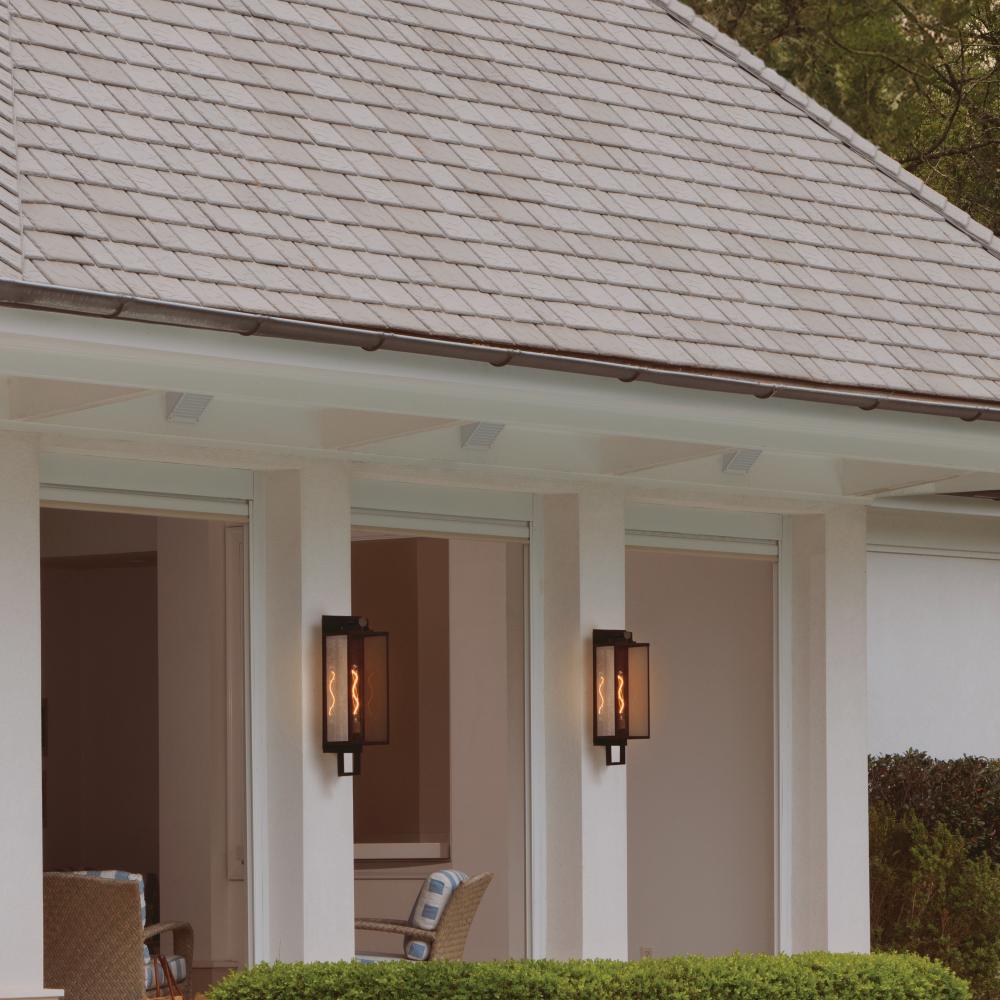 Striking and airy, Catalina breathes modern simplicity into outdoor spaces. Oversized clear glass, a unique single socket, and a two-tone Black with Burnished Bronze finish pair perfectly to present a statement-making fixture. The finishing touch is a floating effect created by the classic rectangular lantern design suspended from a top knob.