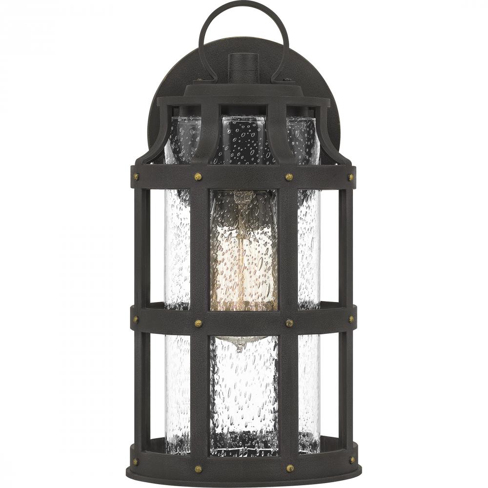 Achieve the Engligh tudor look for your homes exterior with the Lassiter collection. The hardy composite cage, finished in Palladian Bronze, protects the clear seedy glass shade and adds an interesting design element. As a part of our Coastal Armour collec