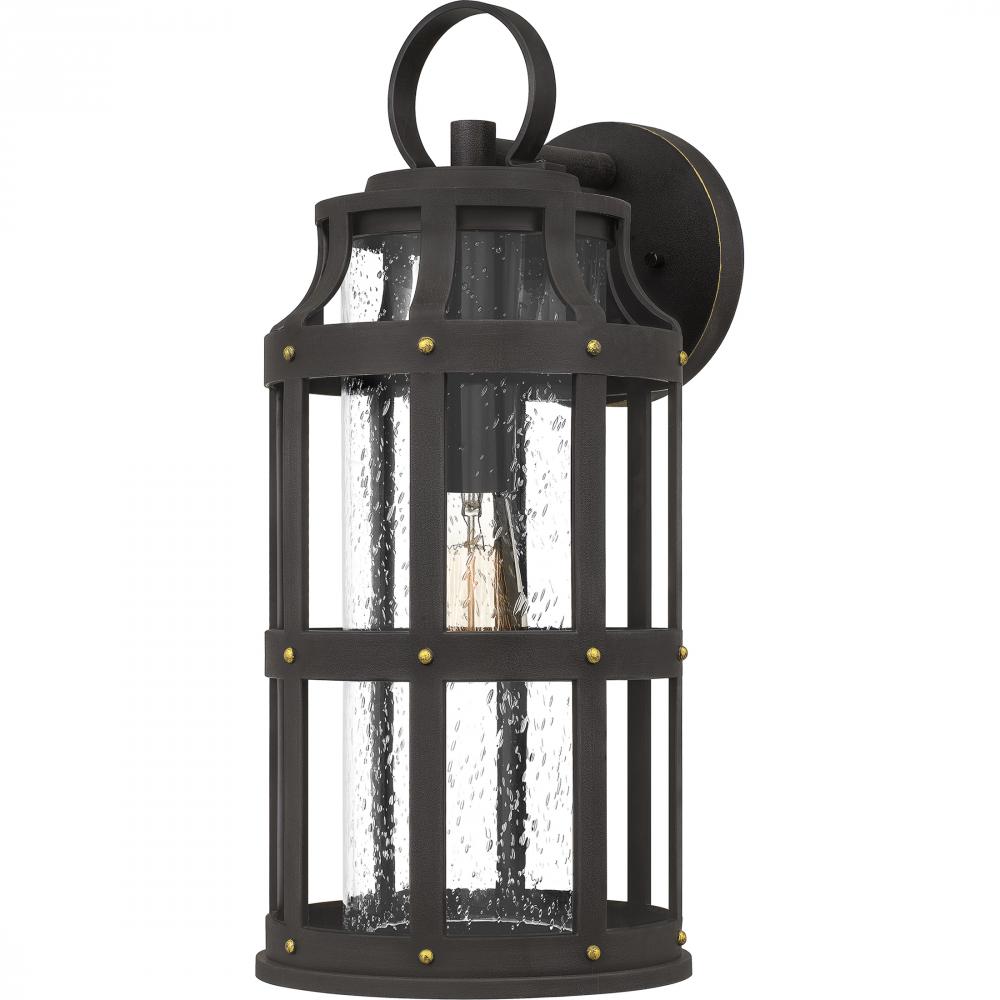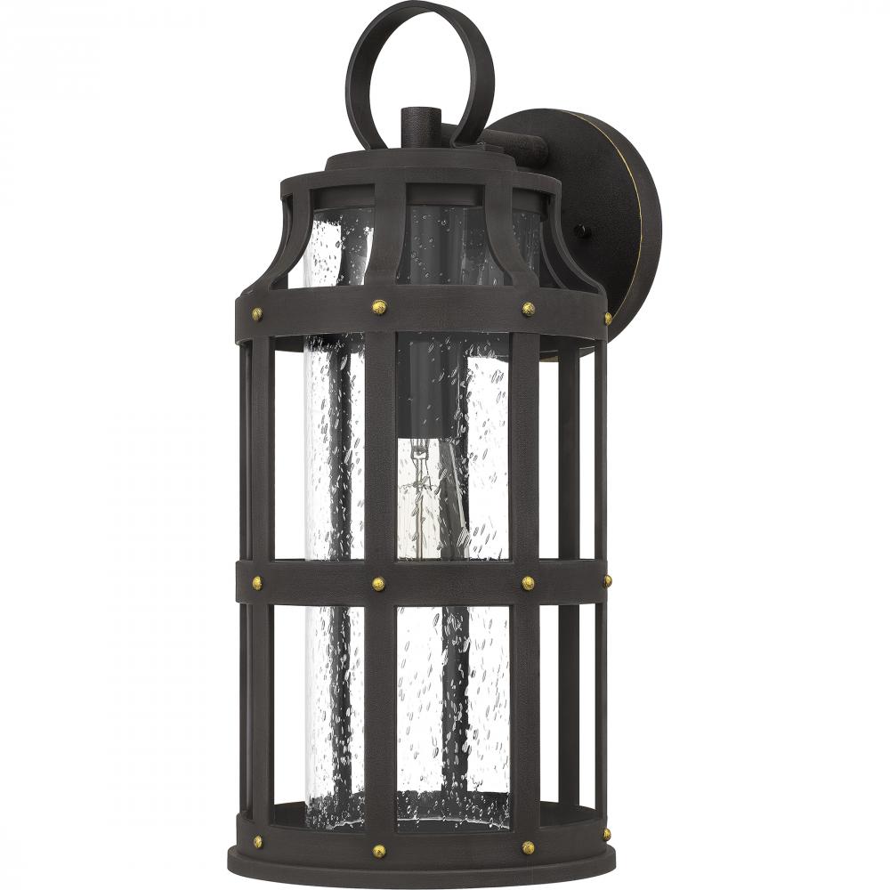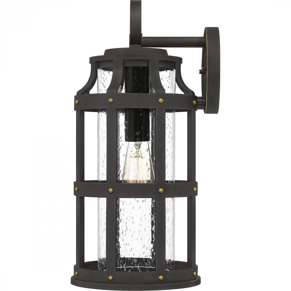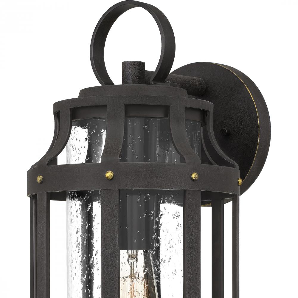 Achieve the Engligh tudor look for your homes exterior with the Lassiter collection. The hardy composite cage, finished in Palladian Bronze, protects the clear seedy glass shade and adds an interesting design element. As a part of our Coastal Armour collec