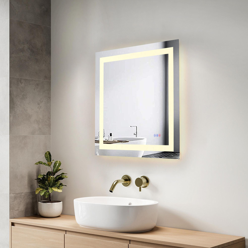 This dimmable LED mirror seamlessly blends elegance and functionality, with touch controls for effortless customization and a sleek, modern design.