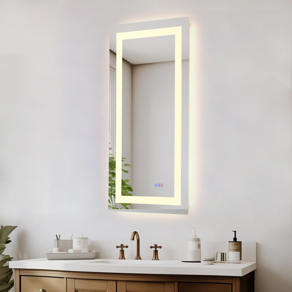 Redefine your daily routine with this ultra-modern LED mirror, designed to offer the perfect blend of style and functionality. Featuring both front and back illumination, this mirror provides a soft yet powerful glow that enhances your space with a luxurious ambiance. The adjustable color temperature (ranging from 3000K to 6400K) allows you to customize the warmth or coolness of your lighting, while the dimmable function lets you create the perfect brightness level. With a 90 CRI rating, this mirror ensures accurate color representation, making it perfect for grooming, makeup application, or daily self-care. The built-in defogger keeps your reflection clear and can be turned on or off at your convenience. Thanks to the touch sensor controls, adjusting your mirror's settings is effortless, and the memory function saves your last preferred settings for a seamless experience. Designed for versatile installation, this mirror can be hung vertically or horizontally using the included French cleats, making it a stunning and adaptable addition to any bathroom or vanity. It can be hardwired or connected to a wall switch for your convenience. Elevate your space with a mirror that not only reflects your image but also enhances your everyday routine with smart, modern lighting.