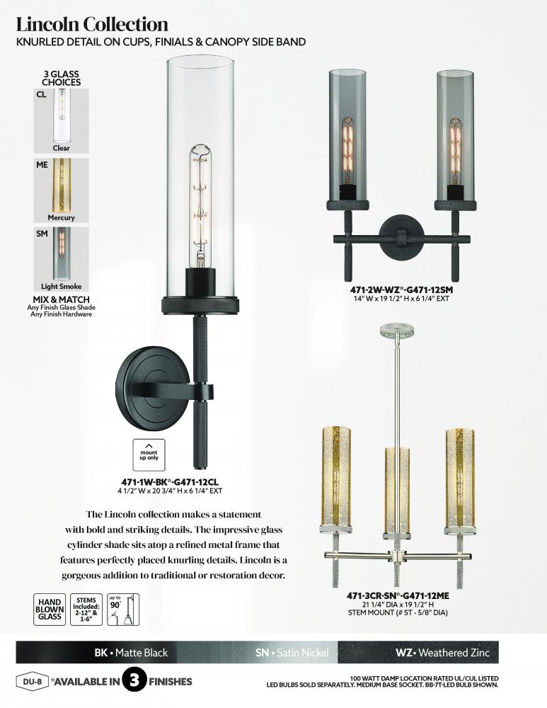 The Lincoln collection makes a statement with bold and striking details. The impressive glass cylinder shade sits atop a refined metal frame that features perfectly placed knurling details. Lincoln is a gorgeous addition to traditional or restoration decor