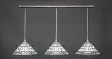 3 Light Linear Pendalier With Hang Straight Swivels Shown In Brushed Nickel Finish With 16 Pewter Art Glass
