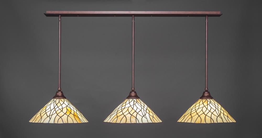 Toltec Lighting 48-BRZ-911 3 Light Stem Hung Linear Pendalier With Hang Straight Swivel Shown In Bronze Finish With 16 Sandhill Art Glass