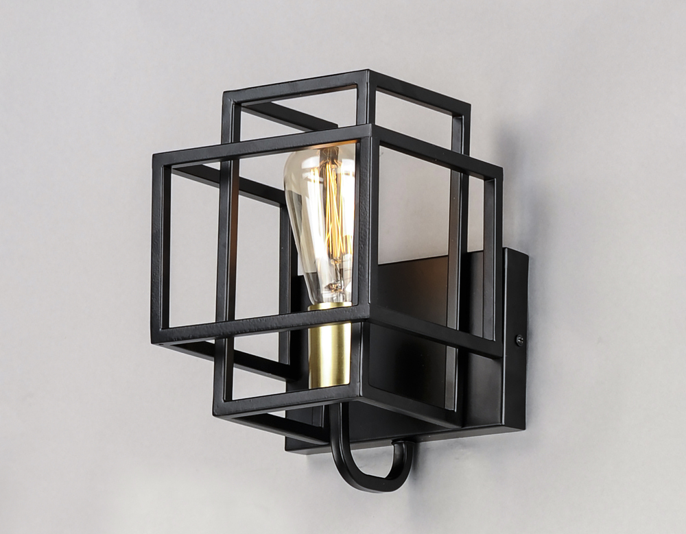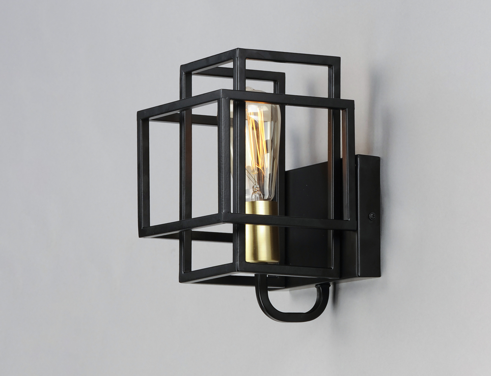 A geometric design constructed of square steel tubing that is finished in a Matte Black and accented with Satin Brass. Add a Vintage bulb for a Restoration look or a Globe lamp for a Contemporary approach. Whatever design you desire this collection will ma