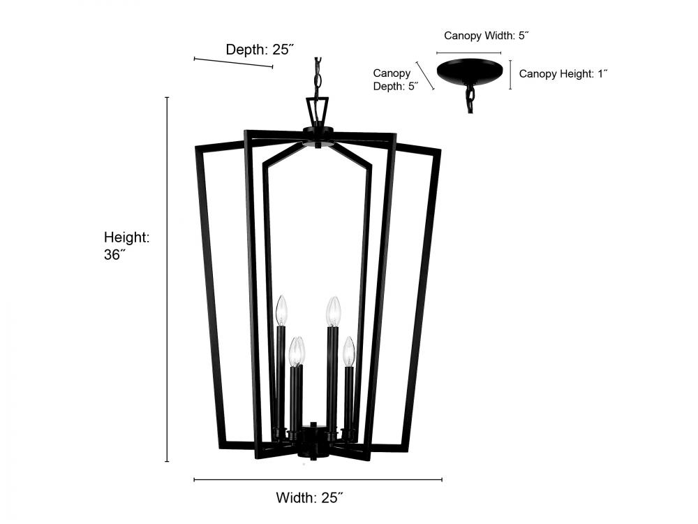 Canopy: 1 H x 5 L x 5 W