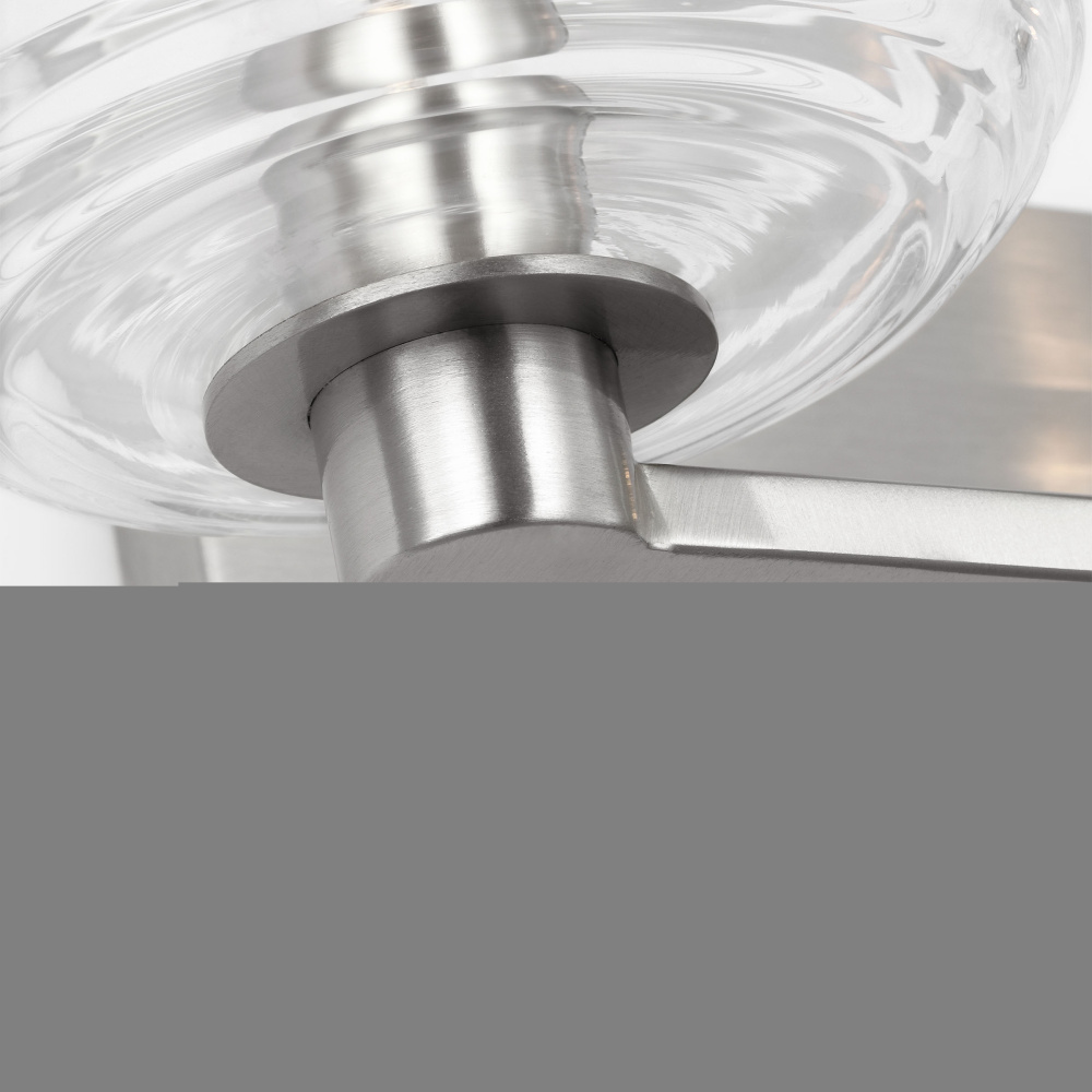Crafted with Steel in a Brushed Nickel finish with clear ribbed glass shades